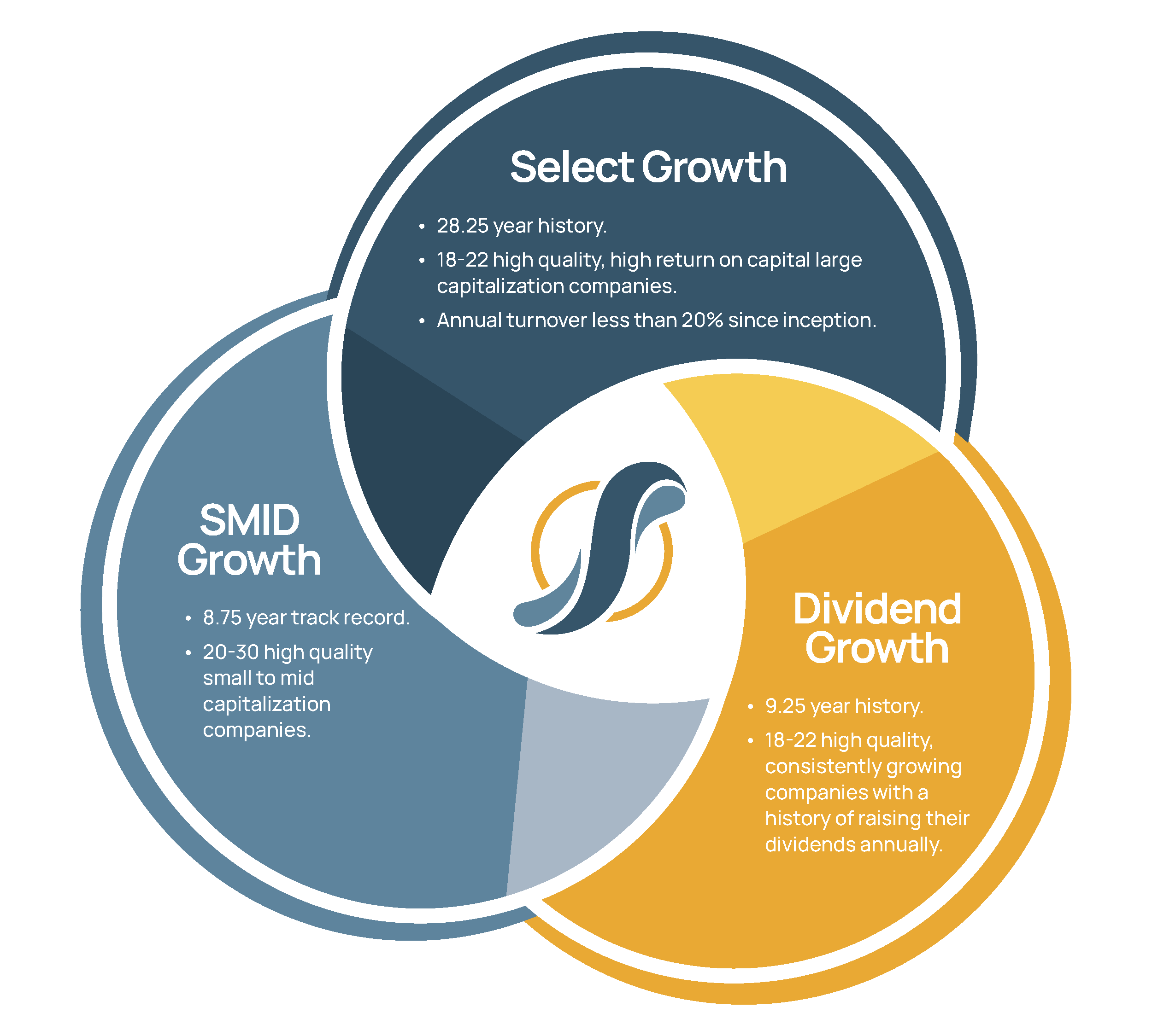 - 18-22 high quality, consistently growing companies with a history of raising their dividends annually.